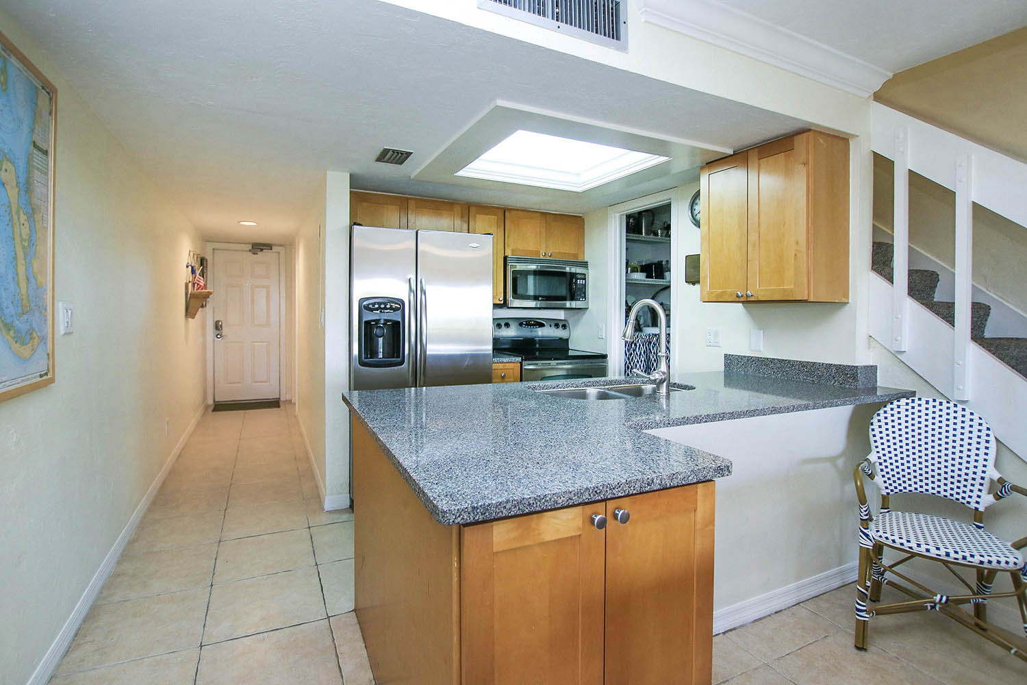 This updated condo on the third floor, easily accessed via elevator, has an unobstructed view of the bay. Watch the osprey soaring over the mangroves, boats going out towards Pine Sound and wonderful sunrises from the glassed-in lanai.